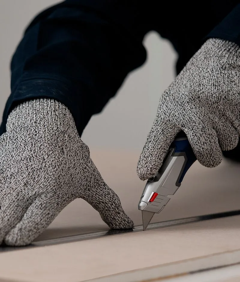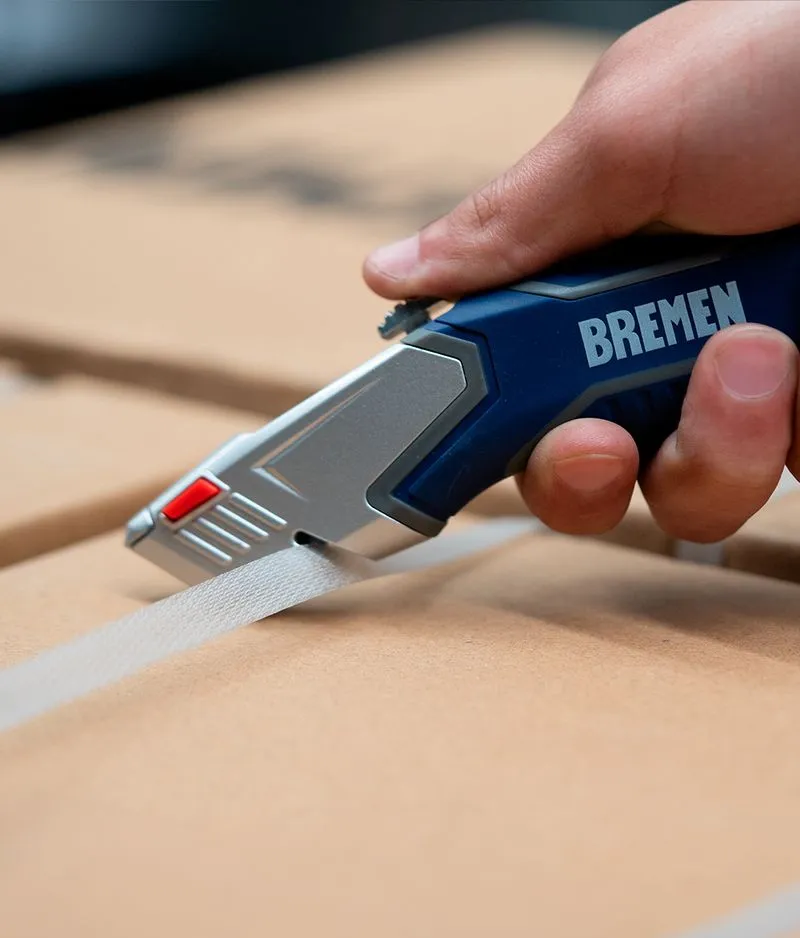 La cuchilla metálica profesional BREMEN posee un sistema de traba de 3 posiciones para regular el corte y un mango ergonómico curvo para mayor comodidad.