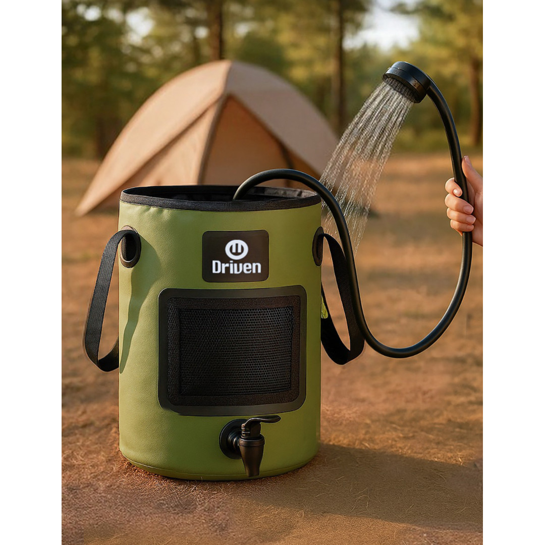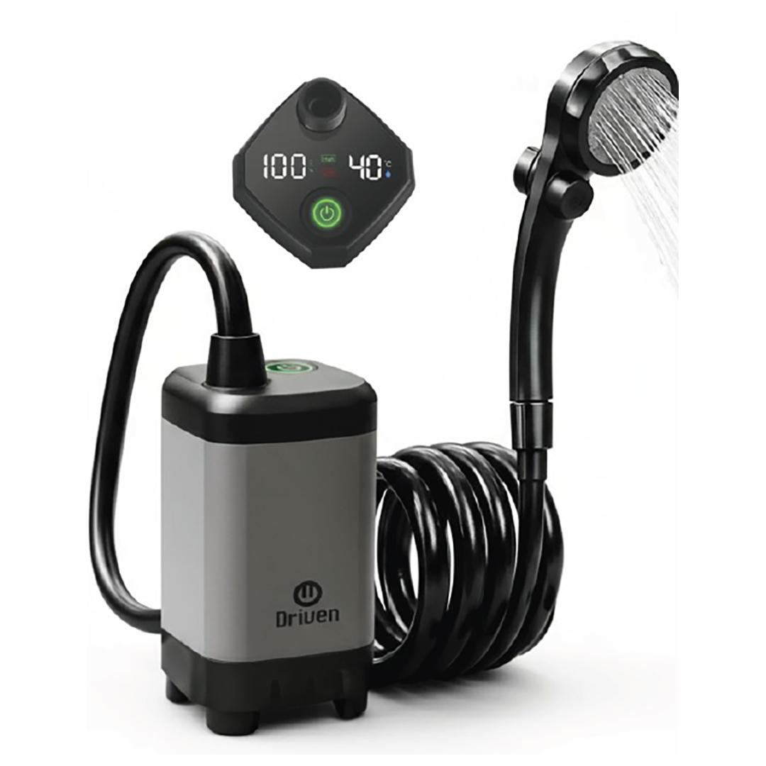 Gracias a su diseño compacto y liviano, se transporta fácilmente y puede utilizarse con distintos recipientes de agua. La ducha portátil DRIVEN ofrece un flujo constante que facilita el lavado personal, de equipos o incluso mascotas.