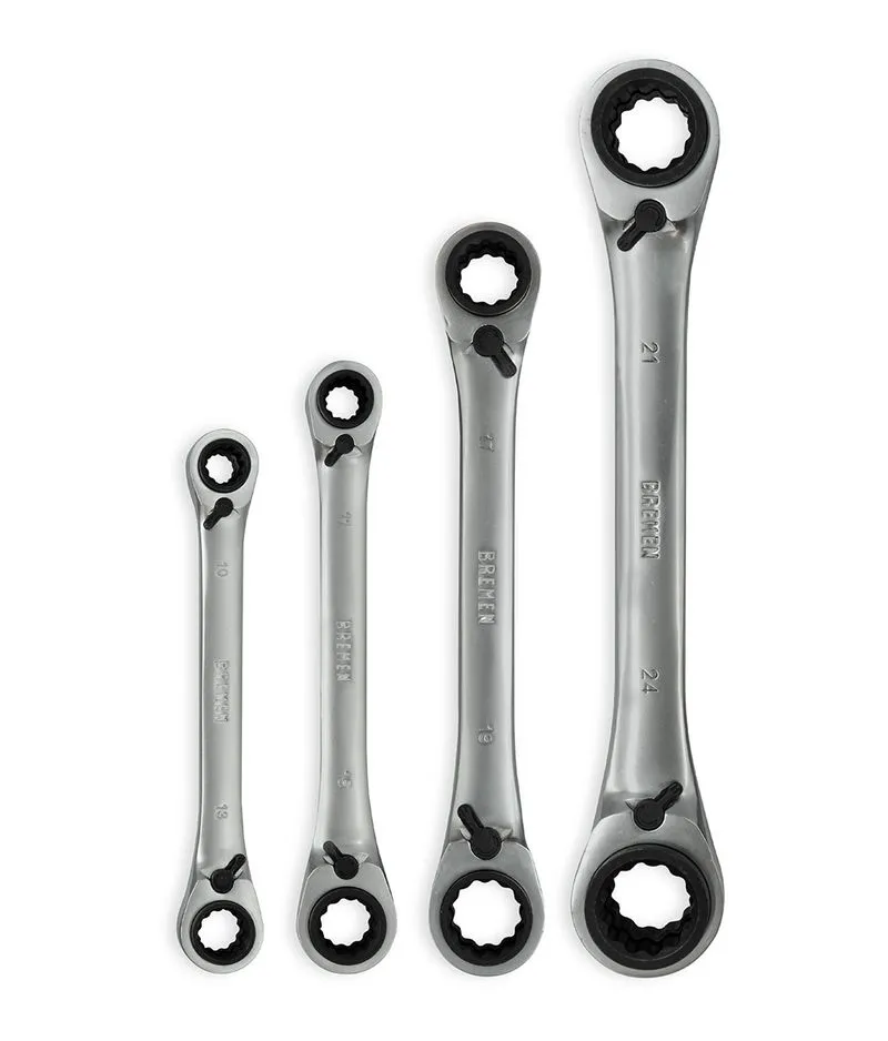 Los juego de llaves BREMEN® con crique reversible 4 en 1 poseen un interruptor para cambio rápido de sentido izquierdo y derecho.