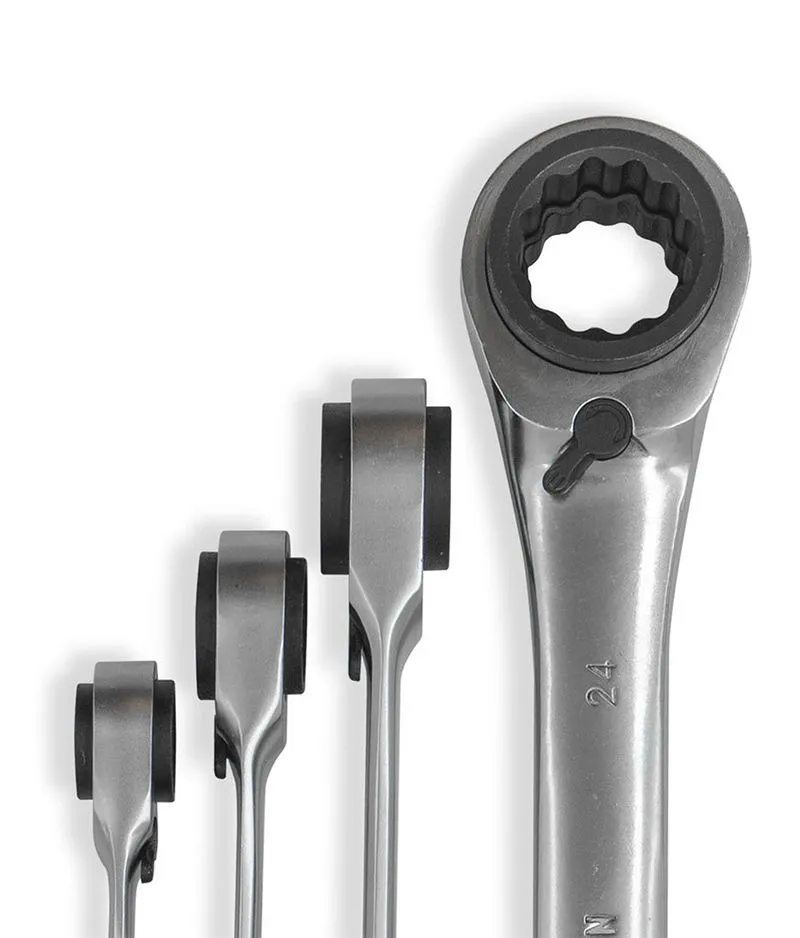 | Juego de llaves combinadas con crique reversible 4 en 1.