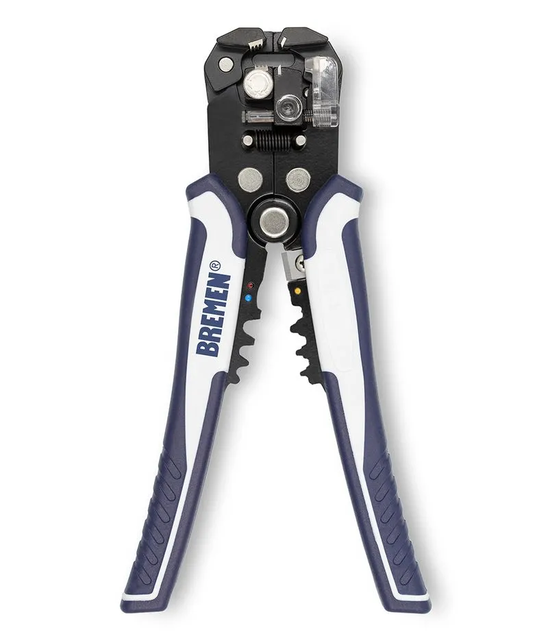 El pelacables Automático Frontal BREMEN cuenta con una adaptación automática a diferentes secciones y tipos de cables. Posee un regulador de profundidad de pelado para hacer trabajos repetitivos de manera rápida y prolija.