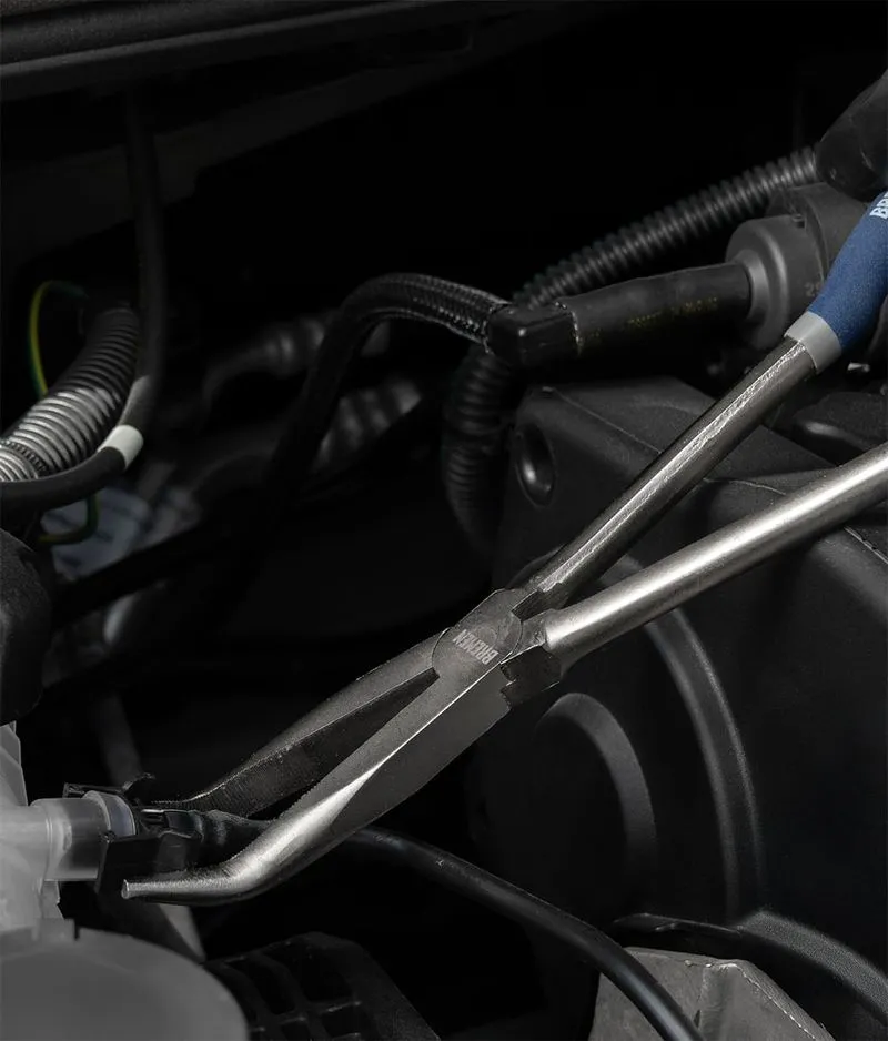 Su punta en ángulo de 45° te permite alcanzar y sujetar piezas que se encuentran en ángulo respecto a la dirección de acceso. Ideal para trabajos mecánicos.