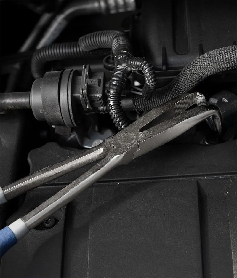 Control total en espacios reducidos. Su diseño curvo permite acceder a lugares u objetos perpendiculares a la dirección de acceso. Perfecta para ajustes, reparaciones y manipulación de piezas en lugares estrechos sin perder firmeza.
